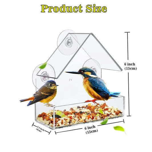 Ventana alimentador de pájaros salvajes, mesa transparente, ventosas extraíbles, bandeja de alimentación deslizante para jardín, Patio